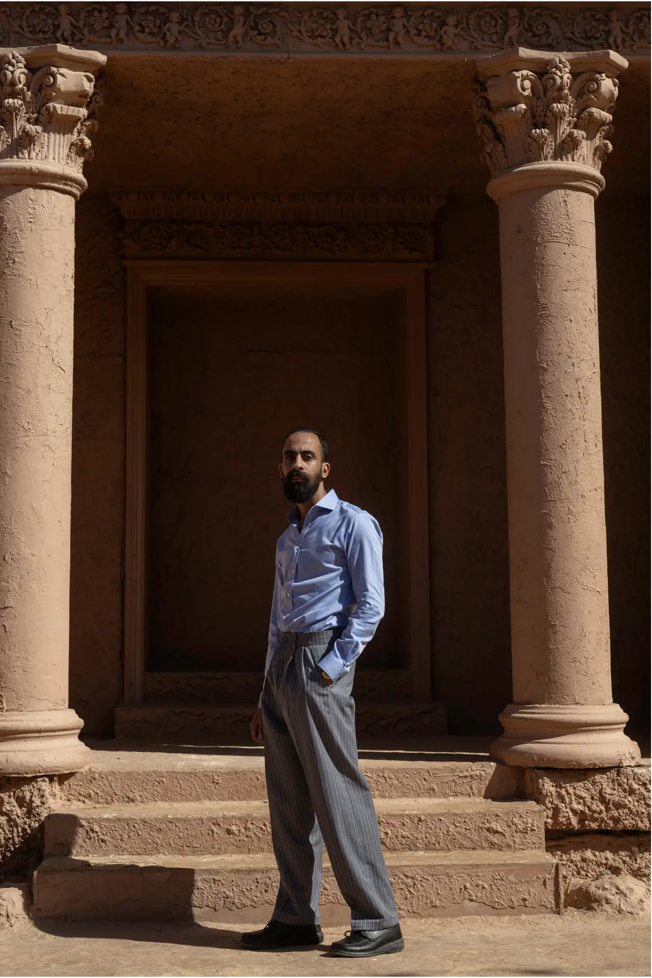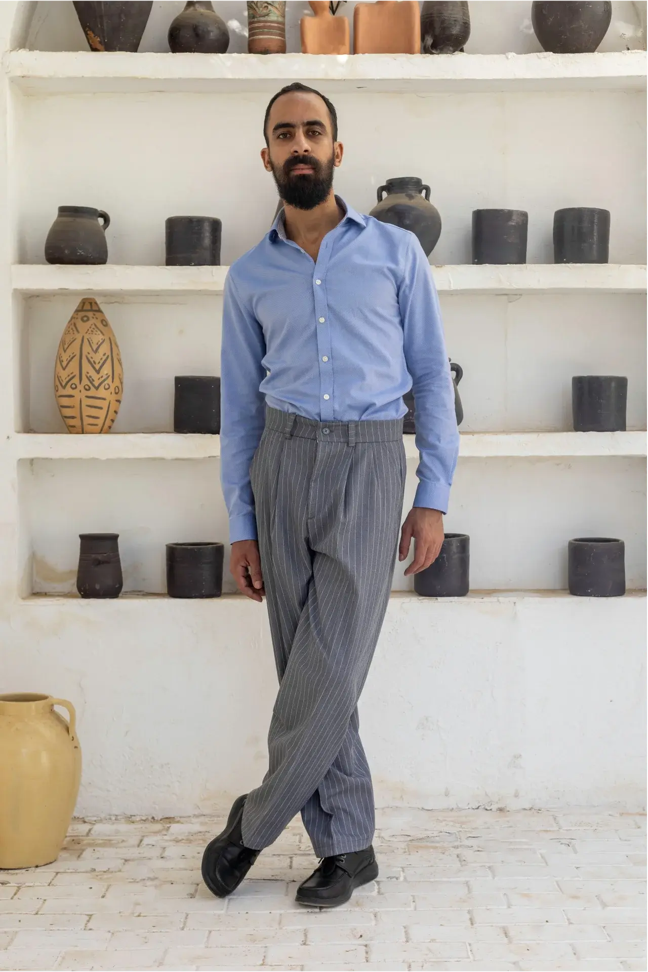If the Oracle provides the vision, then The Aegis Trousers provide the foundation to command it. Inspired by the legendary shield of the gods, this modern armor features vertical pinstripes as symbolic pillars of strength. Crafted for the man who moves with grounded power, it grants the wearer a sovereign presence to stand unshakable against the tides of time.